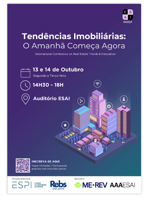 A ESAI em parceria com a ESPI – École Supérieure des Professions Immobilières (França) e a REBS – Real Estate Business School (Espanha), realizará o evento internacional “Tendências Imobiliárias: Amanhã Começa Agora”, nos dias 13 e 14 de outubro, em Lisboa.